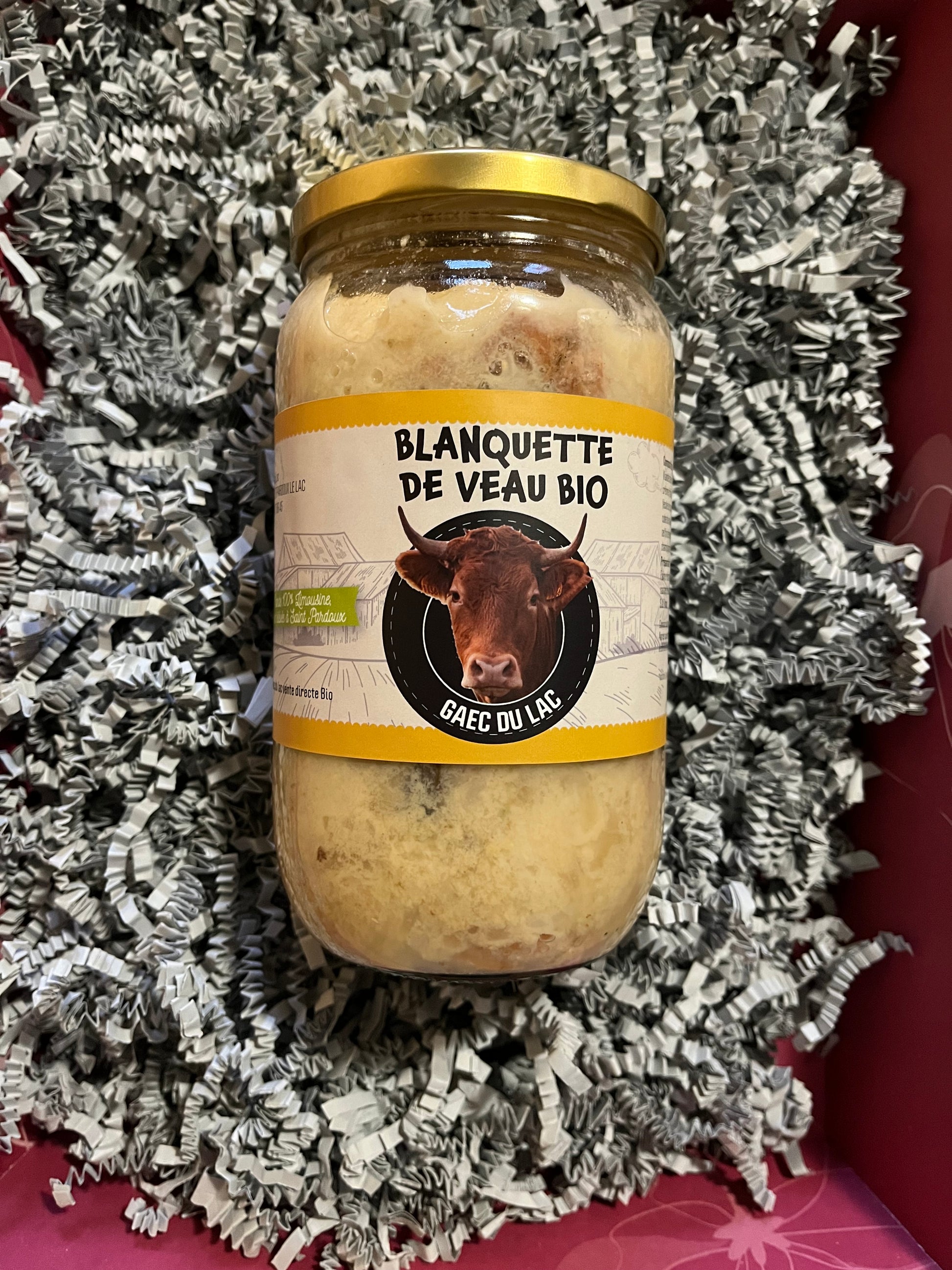 Composition : Viande de veau BIO, oignon, crème fraiche, oeuf, fécule de pomme de terre, bouillon cube de volaille, vin blanc, sel, beurre, poivre, champignon